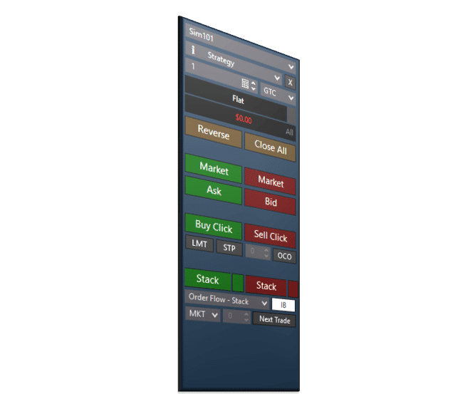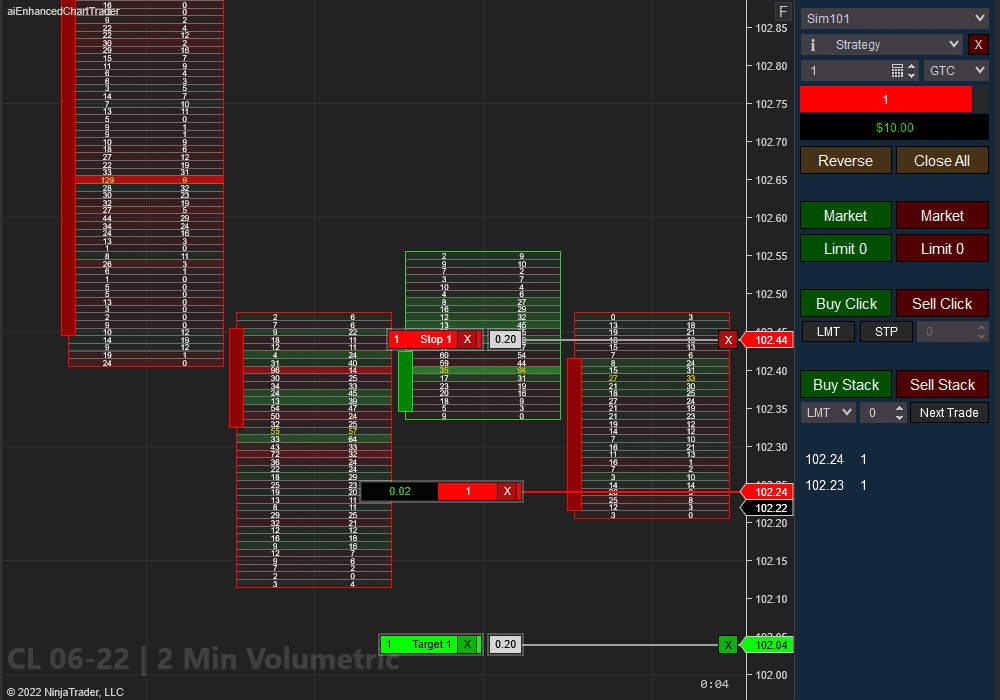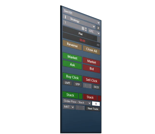 Stacked imbalance entries can be adjusted for any number of imbalances in a row. Generally, we recommend 3-5 bid or ask imbalances in a row to trigger an automated entry with momentum. This software product works with the standard NinjaTrader Volumetric bars, or integrates with the Impact Order Flow Indicator.