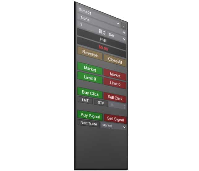 Signal Entry Orders allows traders to click a button and initiates logic to submit an entry order immediately when their signal occurs. All orders are submitted using the Account, Quantity, and ATM Strategy control already present on the Enhanced Chart Trader panel. This removes unnecessary stress and challenge on entering trades quickly.