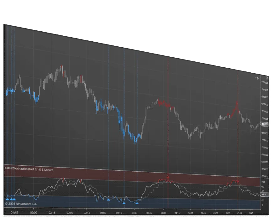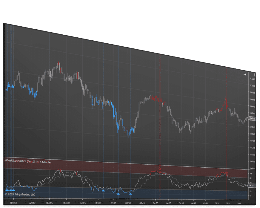 Various signal options can be plotted in the lower panel and on the price bars. Signal logic can also be reversed. options for Buy/Sell signals based on oversold/overbought conditions and triggers. Highly flexible arrow plots in the lower panel along with an option to plot standard NinjaTrader Chart Markers on the price bars.